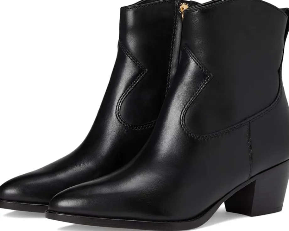 - The essence of enduring style: The Lauren Ralph Lauren® Harpher Burnished Leather boots are a modern classic for the effortlessly chic. Crafted with a luxe leather upper, lining, insole, and outsole, this calf-high stunner features a pointed toe and stacked leather heel that elongate your silhouette with runway-worthy refinement. The side zippered closure ensures a smooth, secure fit, while a leather pull tab with a subtle “LRL” debossed logo adds a refined designer touch. With a softly padded insole for all-day comfort, these boots blend timeless polish with practical ease.
