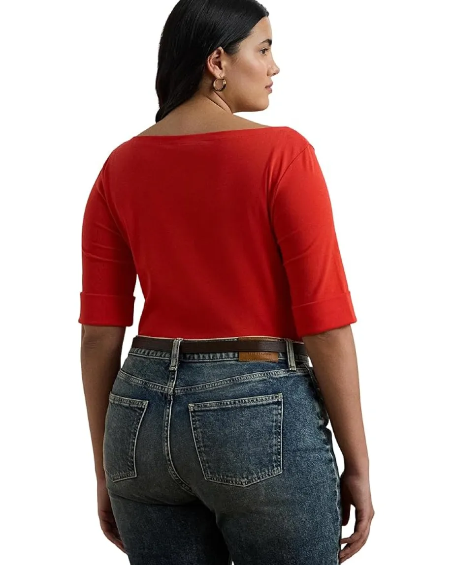 - The LAUREN Ralph Lauren® Plus Size Stretch Cotton Boatneck Top will modernize your everyday style with a stylish neckline, cuffed short sleeves, and a vented hem.