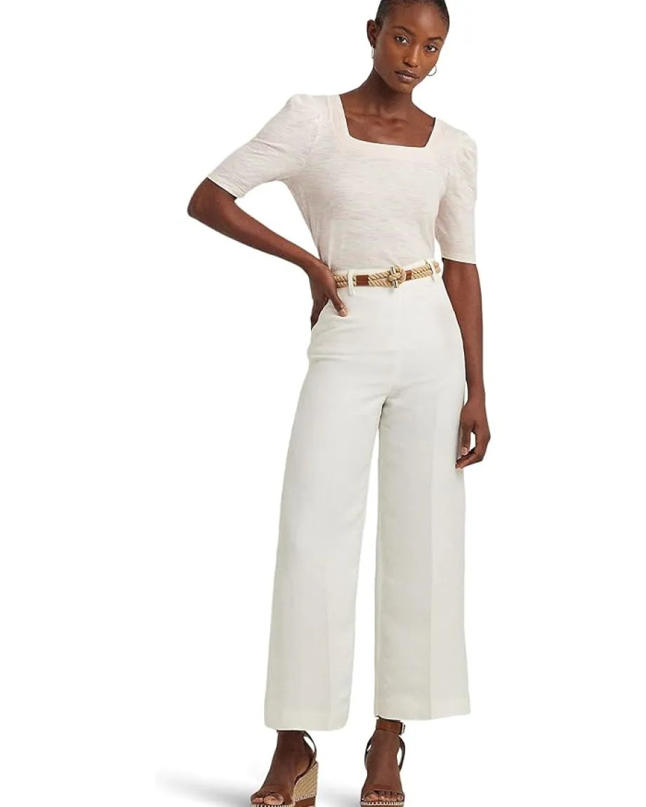 - Elevate your casual look with the LAUREN Ralph Lauren® Striped Cotton Jersey Puff-Sleeve Tee. Crafted with a square neckline, this tee exudes contemporary charm. Its puffed elbow-length sleeves with pleating detail add a touch of sophistication. Adorned with yarn-dyed stripes, it offers a timeless yet trendy appeal.