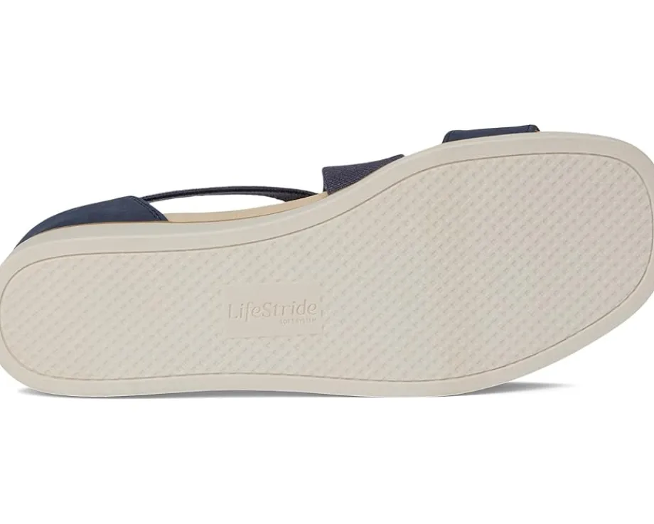 - Feel light and breezy in these sporty LifeStride® Giselle platform sandals. With faux leather upper, a soft square open toe, and stretch gore straps, they offer both style and flexibility. The back zipper makes them easy to slip on and off, and their lightweight design ensures all-day comfort. The Trusted Soft System® comfort technology provides unmatched cushioning and support. The traction sole adds stability, and the just right height platform wedge heel offers a perfect lift.