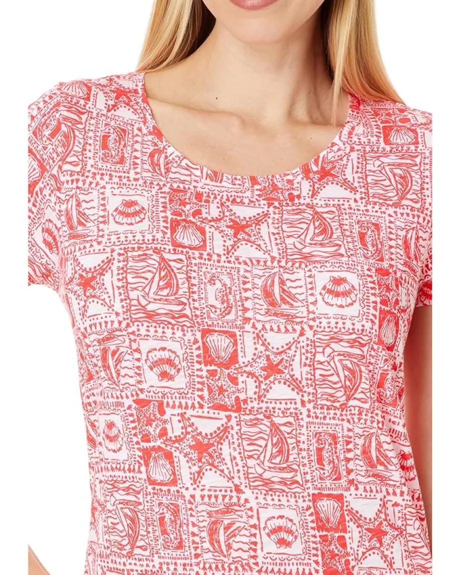 - Get into vacation mode and flaunt a casual, laid-back vibe wearing the Lilly Pulitzer® Etta Scoop-Neck Top. The breathable cotton fabric of the top takes your comfort to the next level. This printed top is designed with short sleeves, a scoop neckline, and a straight hem. Perfect to pair with different bottoms, this cotton top will become your all-season favorite.