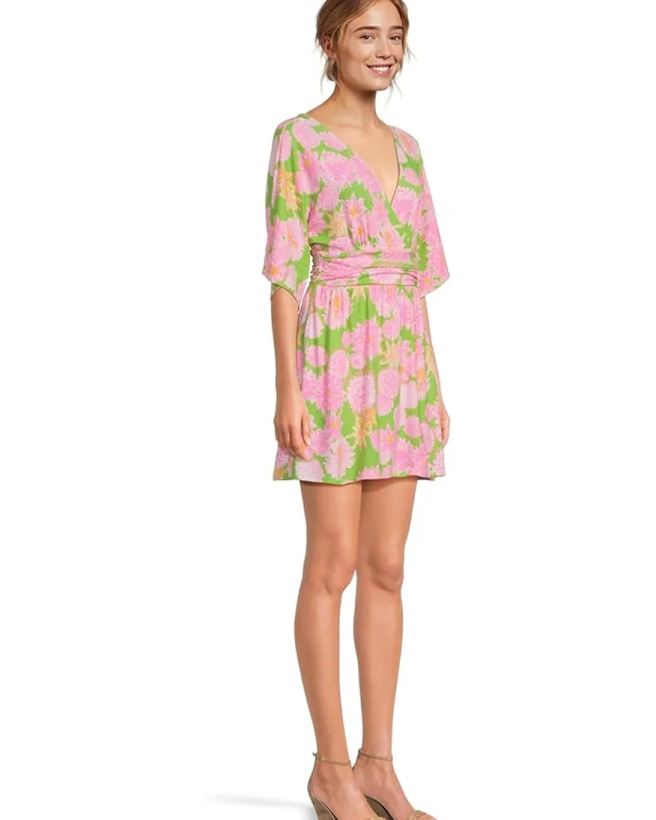 - Add a stunning detail to your casual style wearing the pull-on style Lilly Pulitzer® Parigi Skort Romper Dress. The skirted romper features a surplice V-neckline, elbow-length kimono sleeves, a ruched waistband, and an above-the-knee length skirt with internal shorts. The allover floral print on the dress elevates the style.