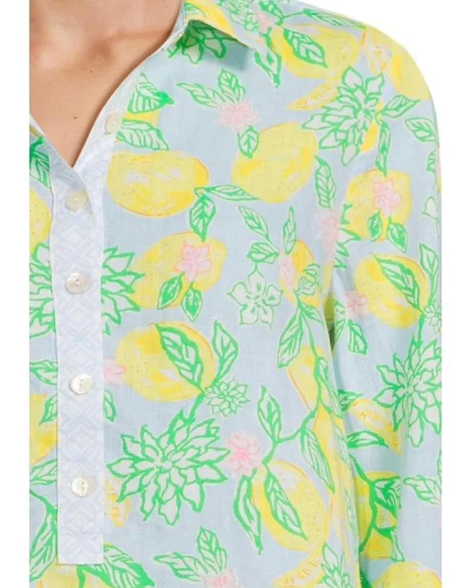 - Flaunt your style wearing Lilly Pulitzer® Riverlyn Pieced Print Tunic! Effortlessly chic, it features a spread collar and five-button placket for easy wear. The quarter sleeves with button cuffs add a touch of sophistication, while the classic fit ensures comfort without compromising on elegance.