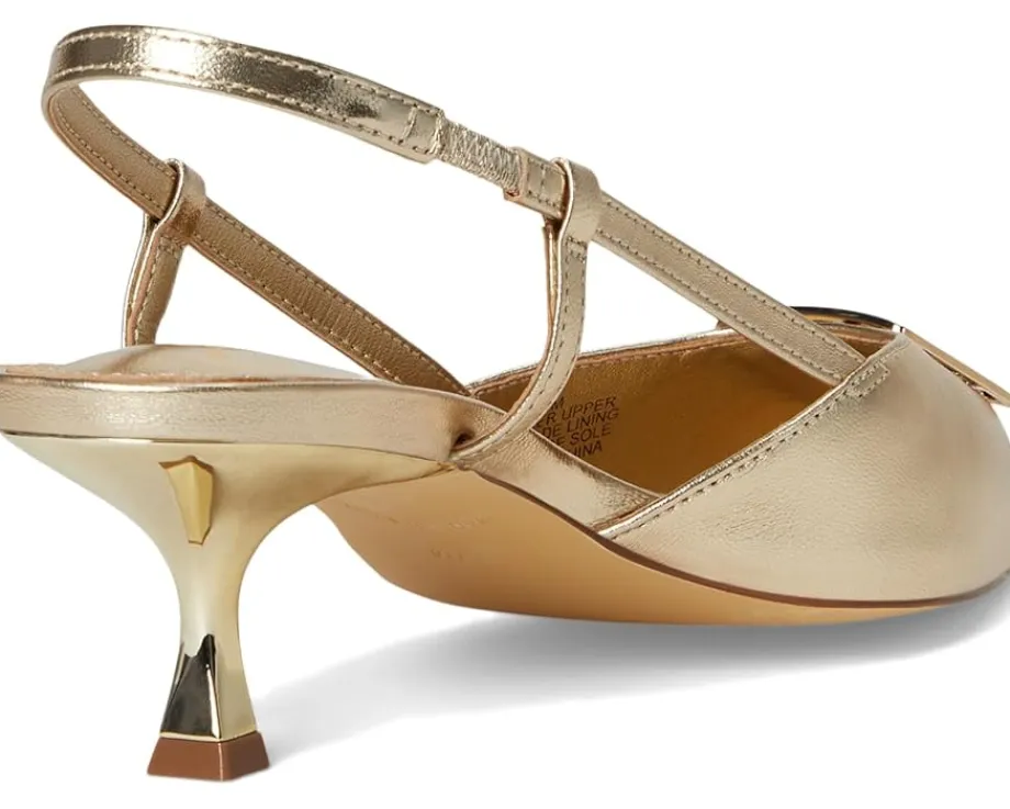 - Step out with a gleaming shimmer wearing the Lilly Pulitzer® Schuyler Kitten Heel Slingback. Featuring an angled kitten heel and a sophisticated metal logo detail, the footwear has LP Plush padded footbed, pointy toe shape and leather upper construction. With a convenient slip-on design and a gored slingback strap, these sandals are perfect for making a statement wherever you go.