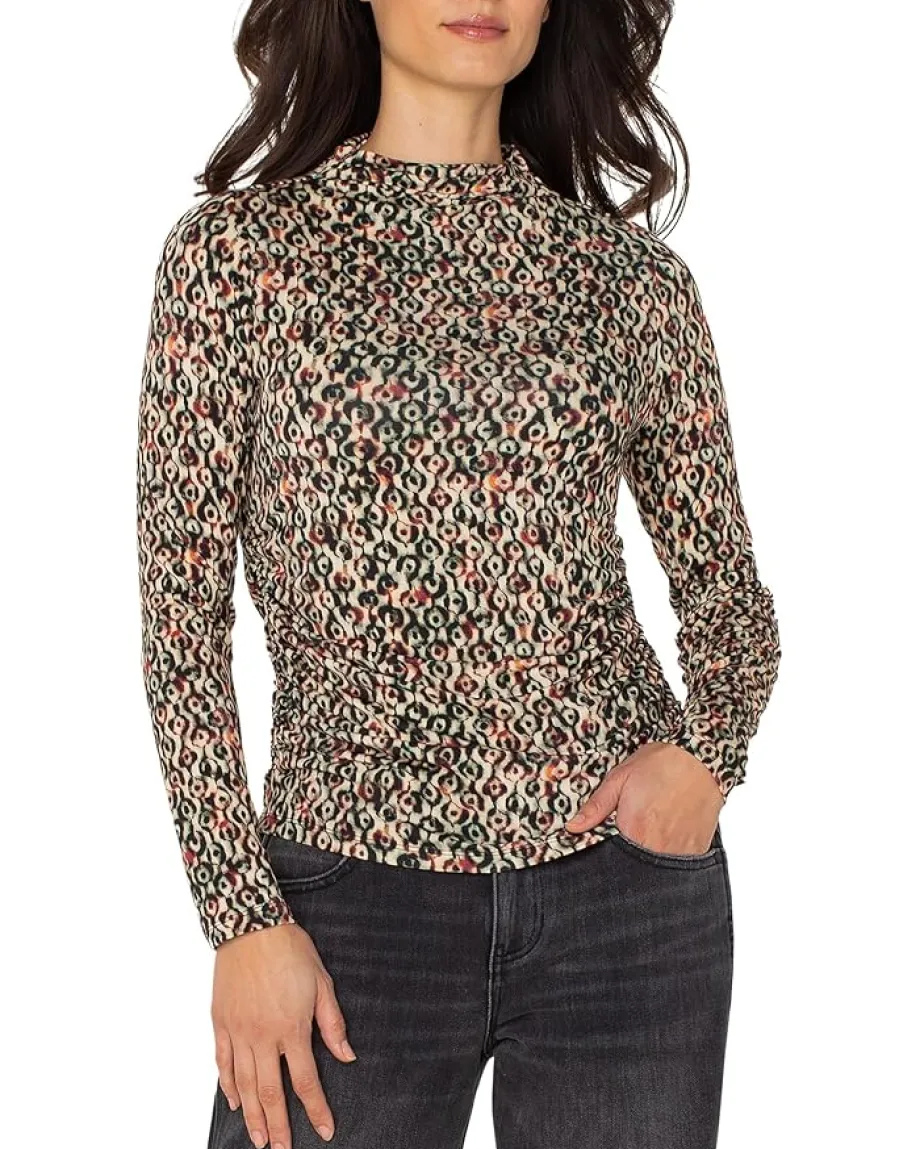 - The Liverpoolâ„¢ Los Angeles Long Sleeve Pleasted Mock Neck Knit Top With Shirring provides both comfort and breathability with a beautiful mock neck. The shirred detailing and relaxed knit make it versatile for day-to-night wear without sacrificing ease of movement.