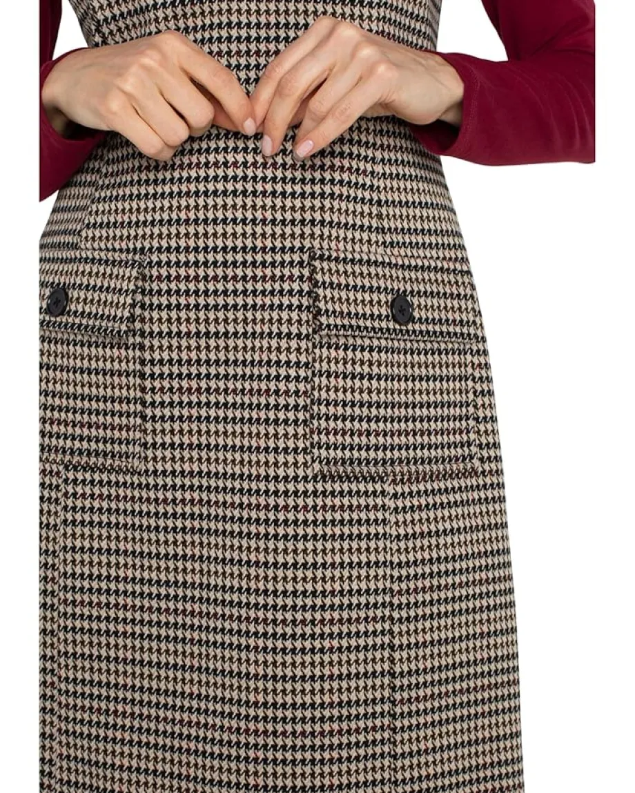 - Crafted with care and attention to detail and made in a beautiful black tan houndstooth fabric, the Liverpoolâ„¢ Los Angeles Sleeveless Shift Dress exudes timeless elegance with a modern flair. Its two front pockets add a touch of practicality without compromising style while the zippered back closure ensures a seamless fit, allowing you to slip into this dress with ease. This patterned dress comes with a sleeveless style, crew neckline, and straight hem. Elevate your outfit with classic black heels or opt for a more casual vibe with your favorite pair of loafers.