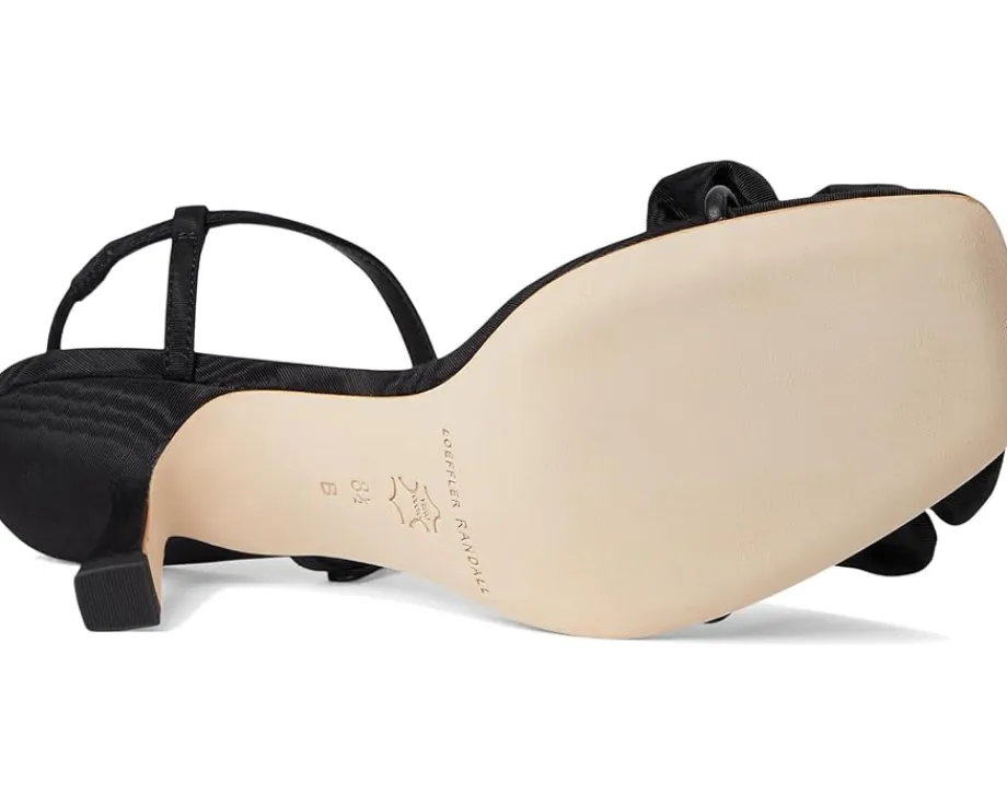 - Floral artistry, underfoot: Loeffler Randall® Frank Flower Applique Heeled Sandals: event-ready elegance. Crafted with a soft wool upper, these beauties feature a delicate floral applique that adds a whimsical, feminine touch. The buckle ankle strap ensures a secure fit, while the kitten heel delivers effortless sophistication with all-day comfort. Lined with smooth leather and cushioned with a viscose insole, these sandals offer a luxe feel with every step. Finished with a sleek leather outsole, Frank is the go-to choice for weddings, garden parties, and any occasion that calls for romance and charm.