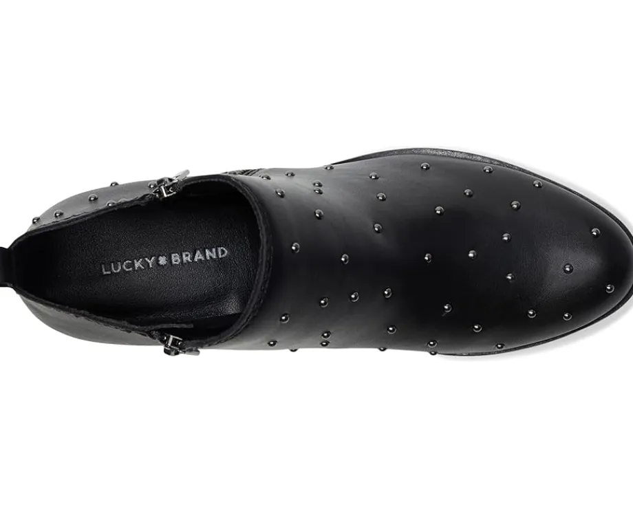 - Rooted in rock ‘n’ roll with a signature sense of humor, Lucky Brand® stands for independent thinking, individual style and a feeling as authentic as love. The Basel bootie from Lucky Brand features a versatile design that you’ll love pairing with anything from jeans to midi skirts. Double zippers and a chunky block heel give this pair a touch of edge.