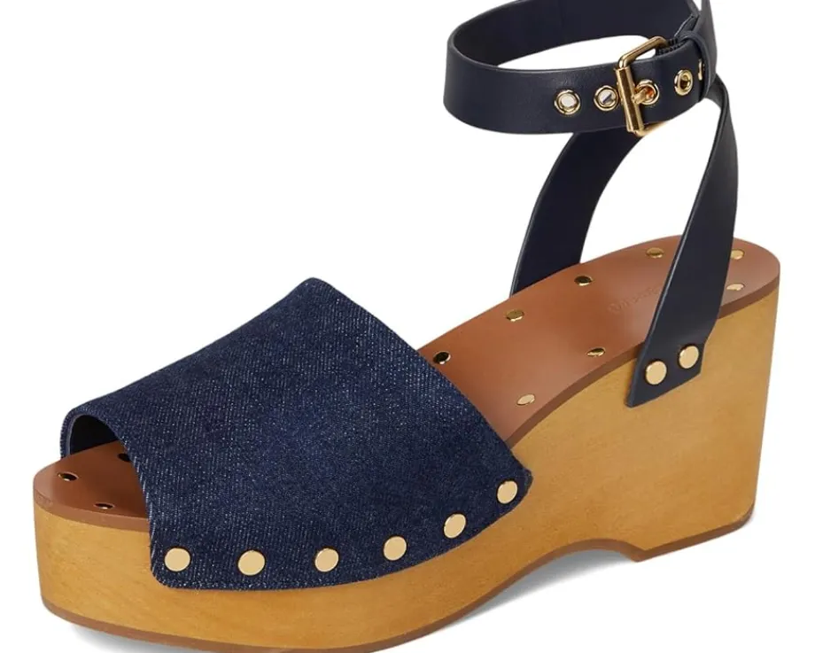 - Elevate your walking style wearing the Madewell® Holland Clog. Crafted from leather upper, leather lining, and insole, this pair of shoes features open round toe, platform wedge heel, accented with metal studs and an adjustable ankle strap adorned with grommets.