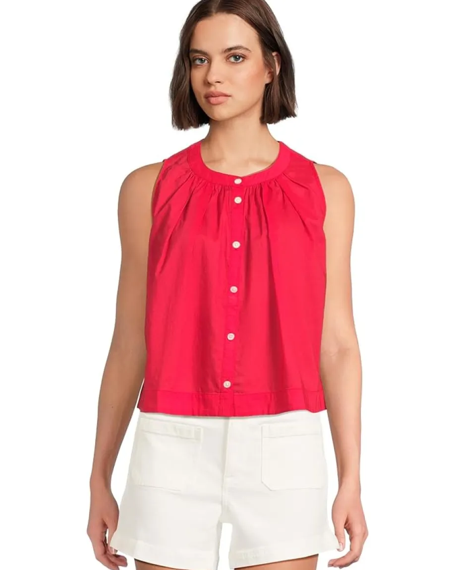 - Elevate the strong silhouette wearing the Madewell® Leon Top – Voile. This top features crew neckline, sleeveless style, standard length, and button front closure.