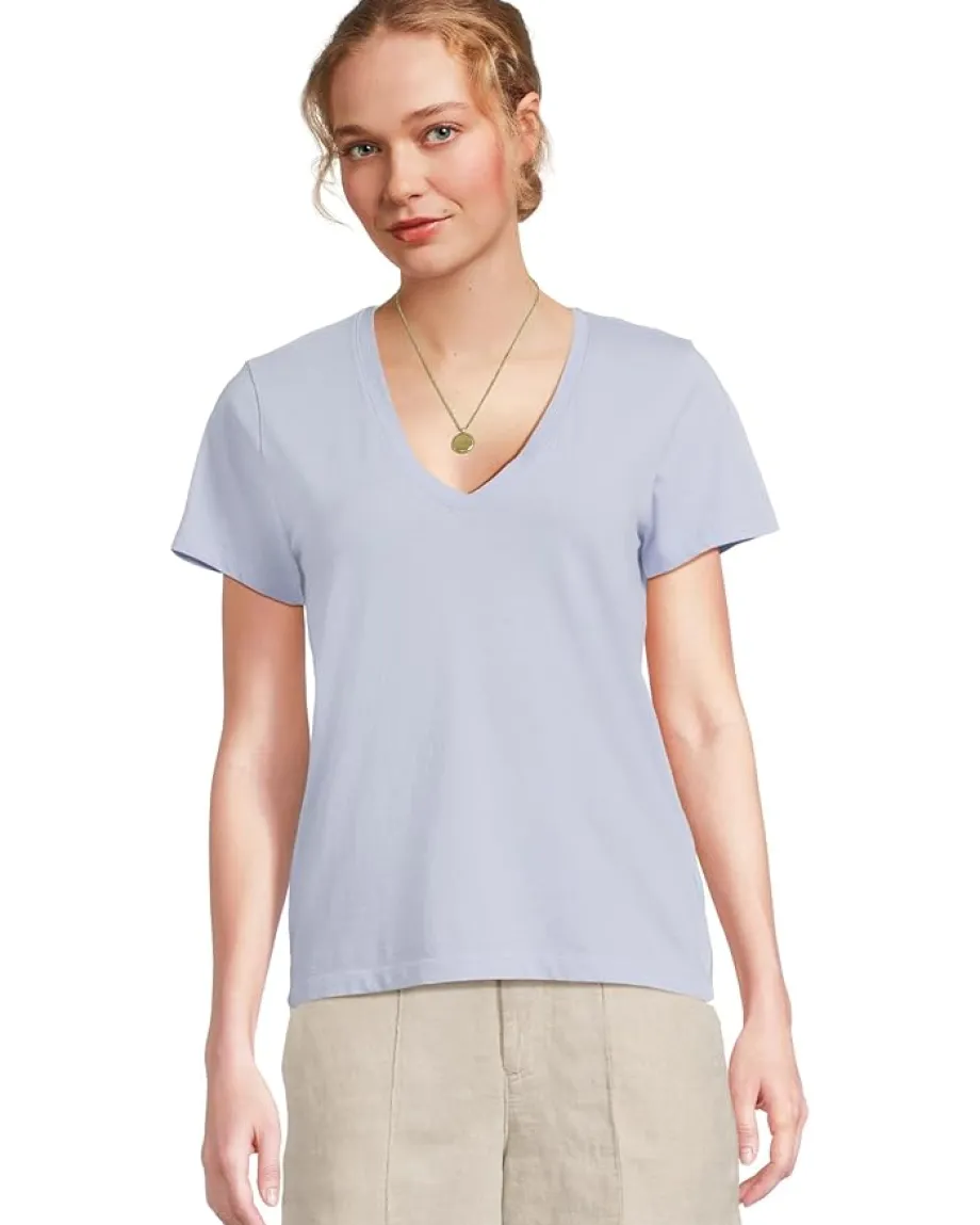 - The Madewell® Northside V-neck Tee features a breathable and comfortable cotton fabrication for all-day comfort. It is designed with short sleeves, a V-neckline, and a straight hem. This cotton tee makes a great addition to your wardrobe.