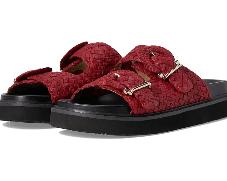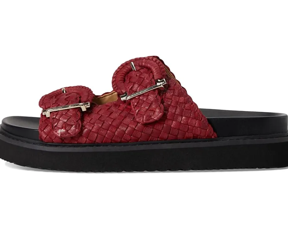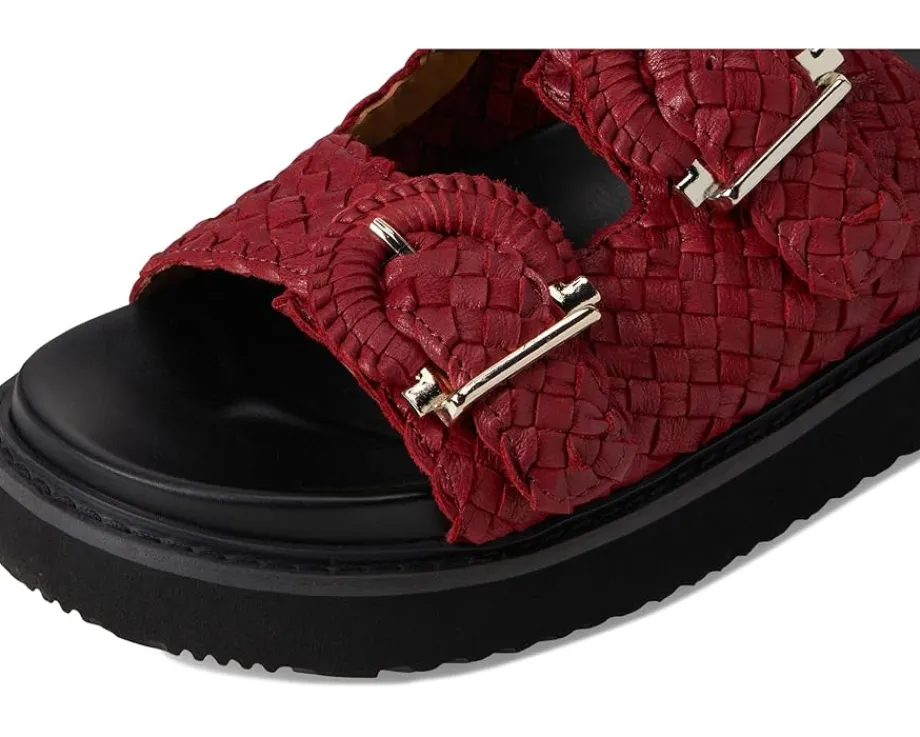 - Add glam to your casual look wearing Marc Fisher LTD™ Auggie Sandals. These feature a woven detailing, slip-on design, and two buckled straps along with an open round toe shape. The sandals are crafted with a leather upper and man made lining.