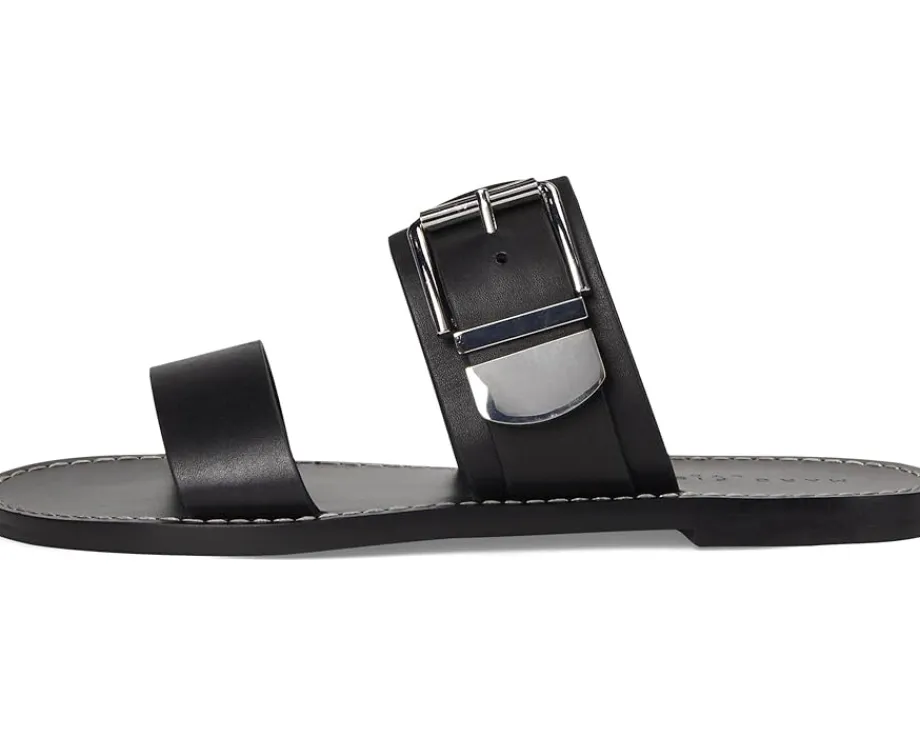 - Stay stylish in the Marc Fisher LTD™ Hallyn Sandals. The slip-on style sandals come with a two strapped leather upper, polyurethane lining, and a comfortable leather insole. The buckle closure on the sandals ensures a secure fit.