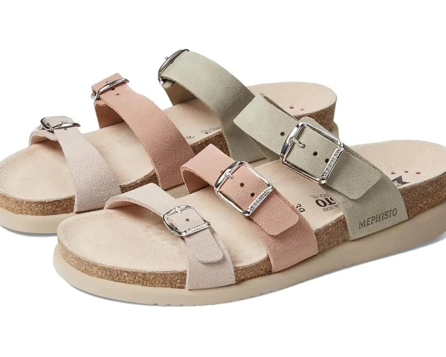 - Enjoy unmatched comfort, flexibility, and cushioning as you walk for miles wearing the Mephisto® Hyacinta Sandals. These are sculpted with triple-colored strappy leather upper with adjustable metallic buckle closures, a contoured padded suede-covered footbed for premium arch support, and a Soft-Air® flexible midsole that absorbs shocks and provides a relaxing walk all the time.