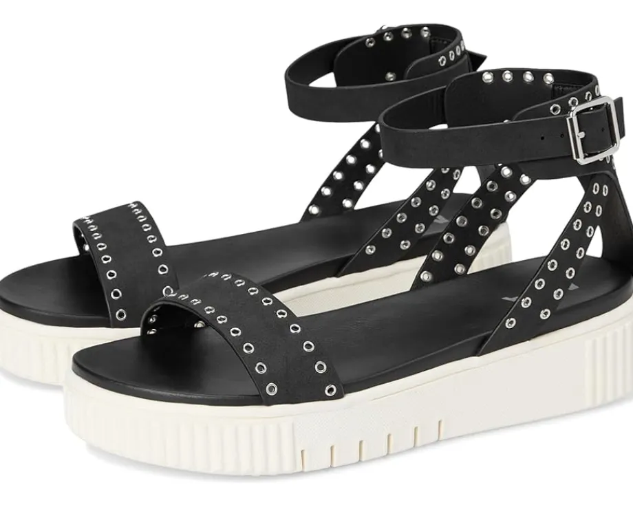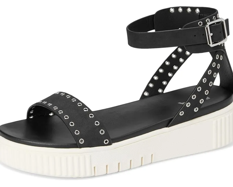 - Designed with an anatomical footbed for cushioned support, the MIA™ Evelin sandals are a great choice to style up your looks and outfits. The faux leather upper features shiny grommets and an ankle strap with an adjustable buckle closure. These platform sandals are made of a faux leather insole and lining, making them comfortable to wear for long hours.