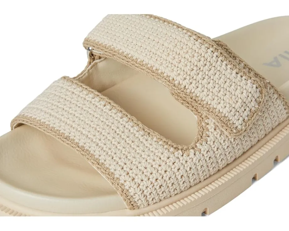 - Slip into ease and trend with MIA™ GABRI. This playful sandal is crafted with a chic crochet faux leather upper, double hook-and-loop straps, faux leather lining, and our MIA™ signature faux leather footbed for maximum comfort. The open round-toe silhouette with easy slip-on style allows quick on/off.