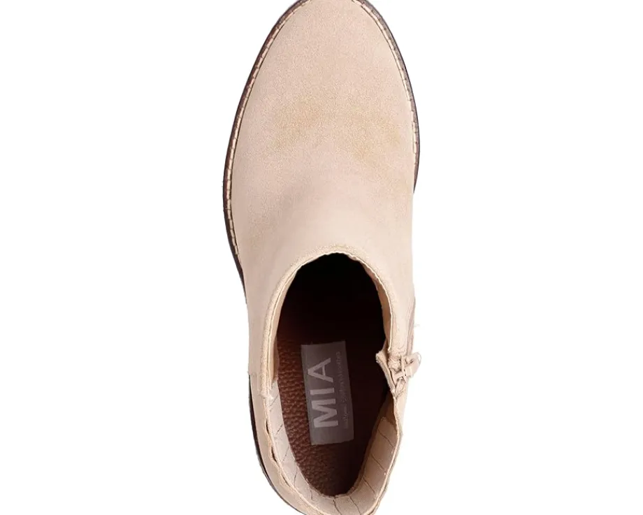 - Meet the MIA™ Harlow, your go-to boot for a night out on the town. This ankle-high boot sits on a block heel and is finished with round toe shape. Crafted with faux suede upper, the footwear has pleated goring and a side zipper for easy entry.
