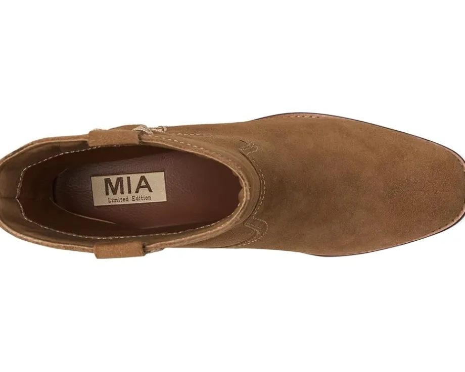 - Discover the epitome of comfort and style in MIA™ MLE-Lauryn. Crafted from lush suede, this ankle-high boot boasts a sleek, long shaft with convenient pull straps for easy wear. The lace-up design adds a trendy touch, while the faux leather lining and EVA insole provide all-day comfort. A durable rubber outsole and stacked heel ensure stability with every step, while the signature contoured footbed molds to your foot for superior support.
