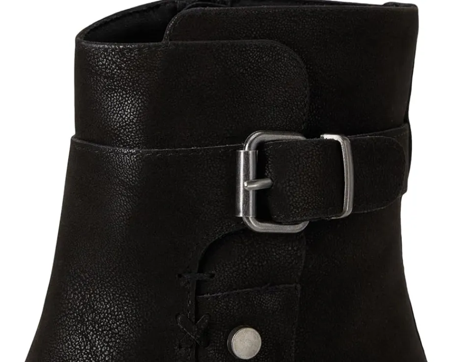 - Elevate your style with the TOULA. This modern boot is crafted from faux suede material and features a buckle accent detail and a zipper closure along the shaft. Finished on a platform lug sole with a stacked 2.7-inch platform heel.