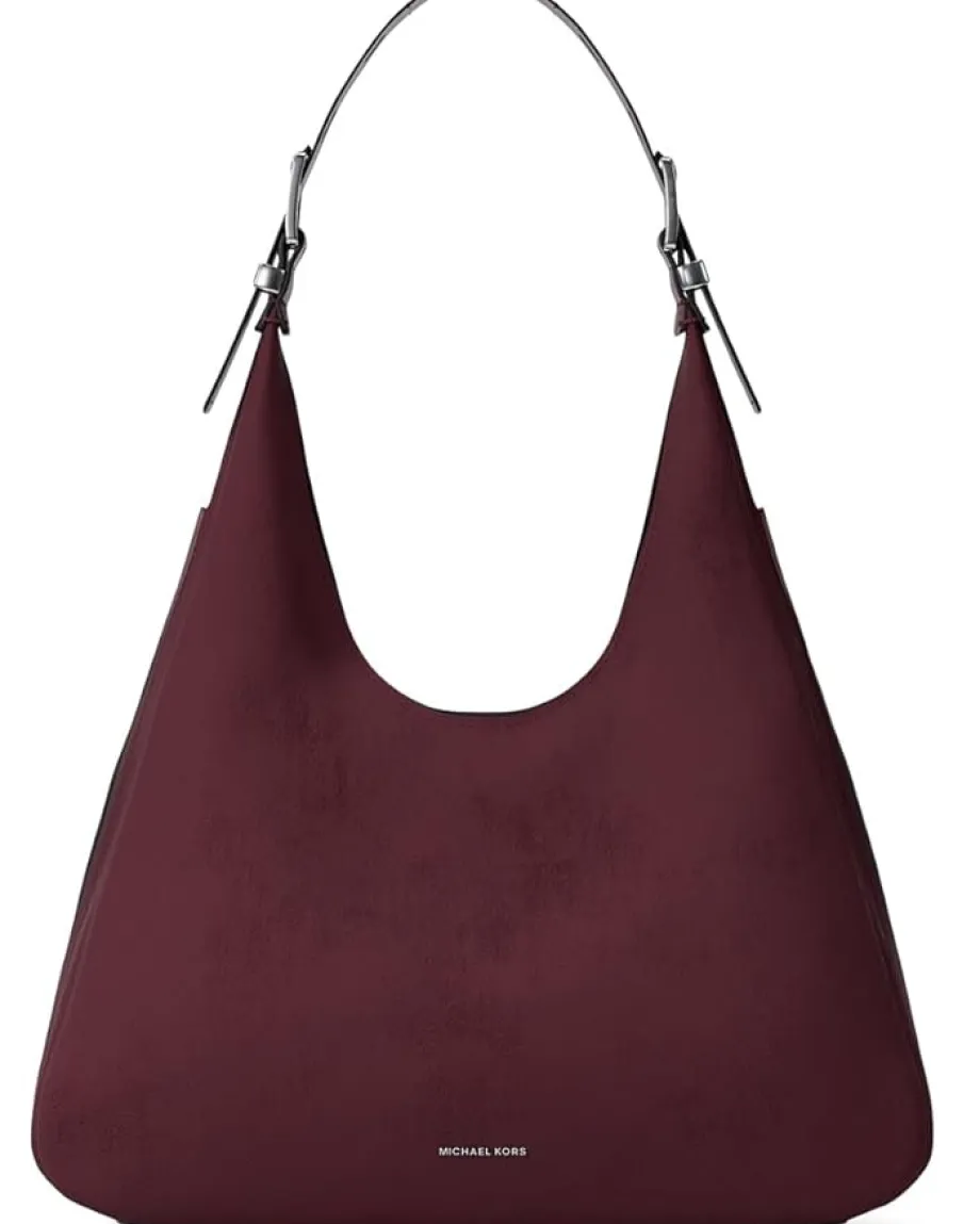 - Keep essentials stored securely in the MICHAEL Michael Kors® Nolita Large Hobo Shoulder Bag. Crafted with a leather construction, the shoulder bag features an adjustable strap, a spacious interior, one internal pocket, and metal hardware detailing at the front.