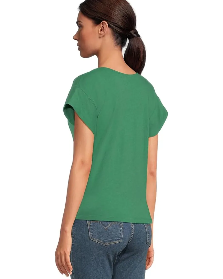 - Elevate your casual style in the Michael Stars™ Tobi V-neck Tee. This pull-on style top features a V-neckline with cap sleeves, straight hemline and a classic fit silhouette.
