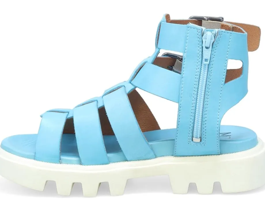 - Featuring a leather upper with a strappy design, the Miz Mooz® Panthea sandals are perfect to pair with different outfits and styles. The leather footbed and lining of these sandals offer durability while the ankle strap with an adjustable buckle closure ensures a secure fit. These sandals come with a zippered back closure for easy on and off. Walk with comfort and confidence wearing these leather sandals.