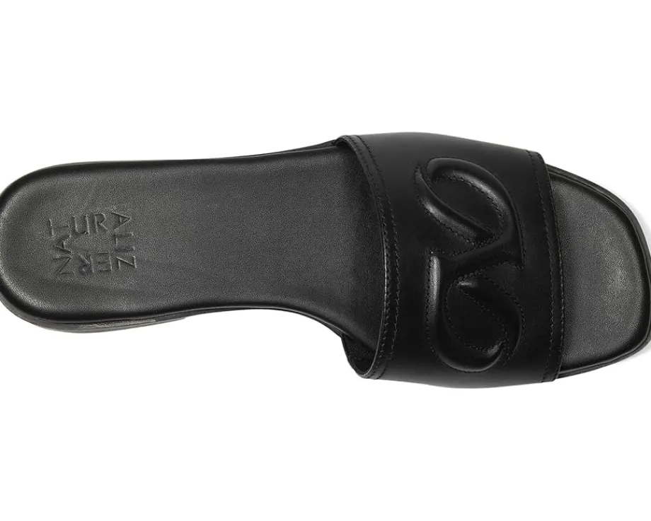 - The Naturalizer® Genevieve slide sandals are the ultimate blend of style and comfort, perfect for refreshing your footwear collection. Featuring the new Naturalizer Infinity logo, they boast a woven synthetic or leather upper with an open square toe design for a modern look. The innovative Contour+ Comfort Technology, along with the extra-cushioned new contour footbed, ensures a premium fit and all-day comfort. With its contoured shape, pressure distribution, and fatigue-reducing properties, these sandals are crafted for longer wear and an elevated walking experience.