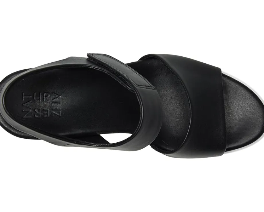 - Add height to your allover look wearing the classy Naturalizer® Imani. Crafted from leather upper, featuring open round toe, strappy details, adjustable hook-and-loop closure, Contour+ Comfort technology for a premium fit and all-day comfort experience, and New Contour footbed: extra layer of padding, contoured shape, pressure distribution, less fatigue and longer wear for a next-level fit.