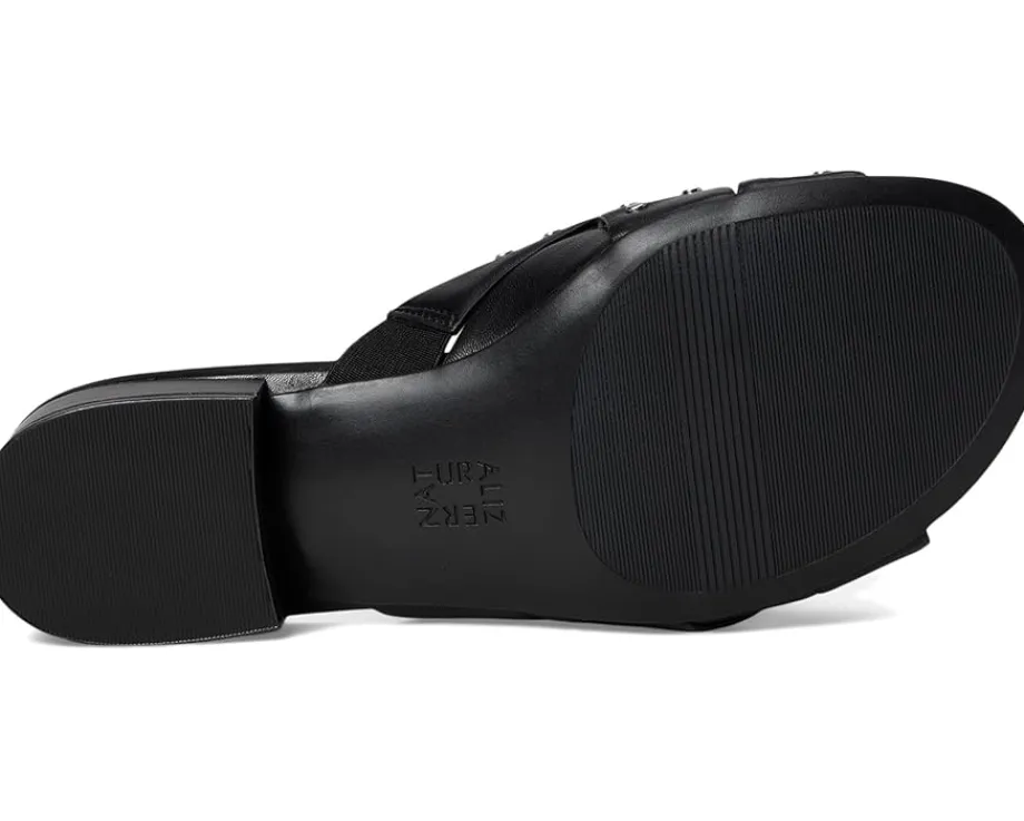 - Slip-on style in a round, open toe silhouette.