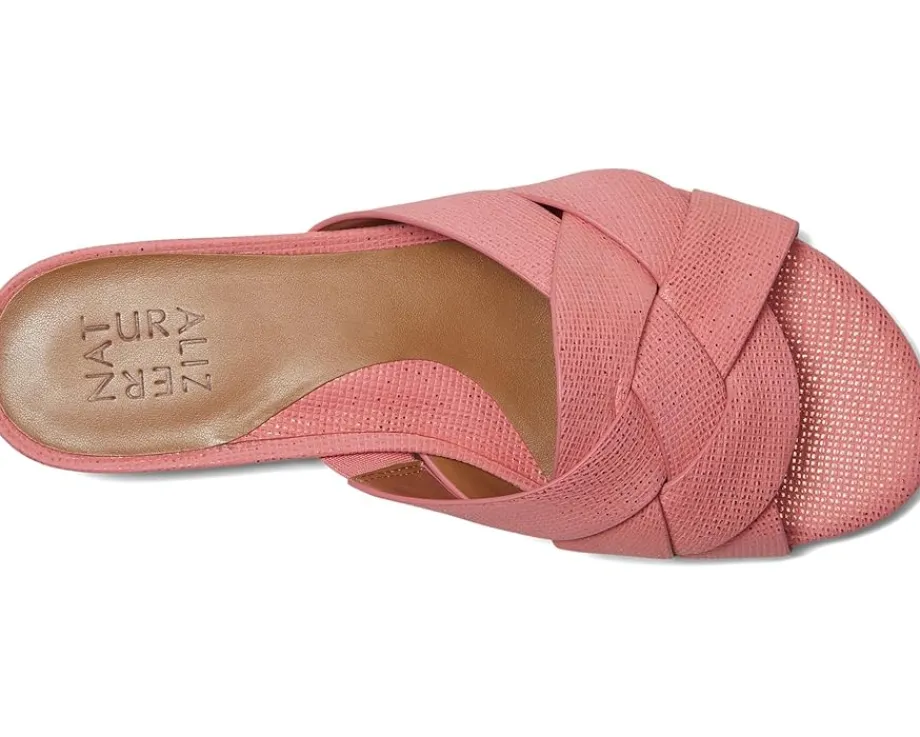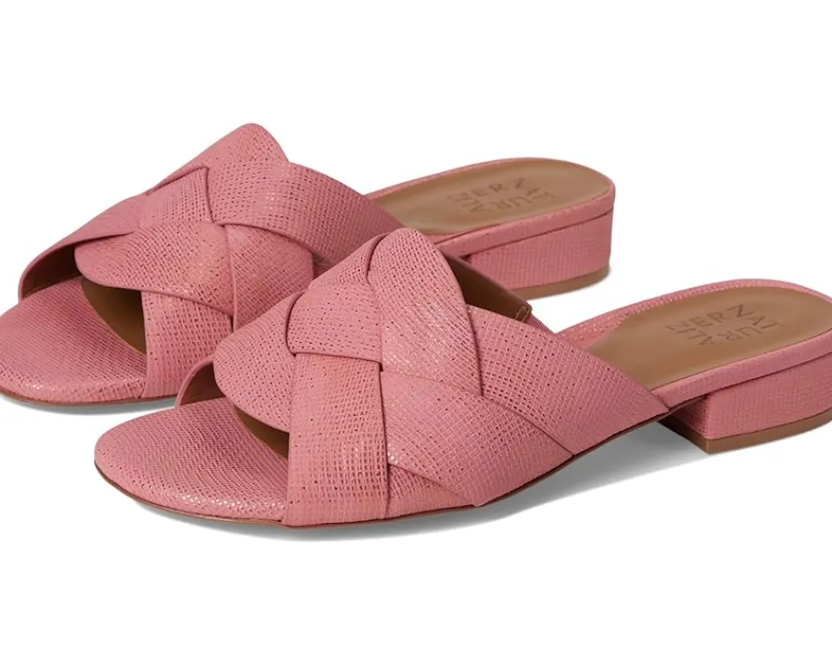 - Your new warm-weather uniform. Keep these Naturalizer® Morena2 slide sandals on rotation all season. The slide sandal features woven details, a leather upper, polyurethane lining, foam insole, and an open toe design. Crafted with Contour+ Comfort technology for a premium fit and all-day comfort experience.