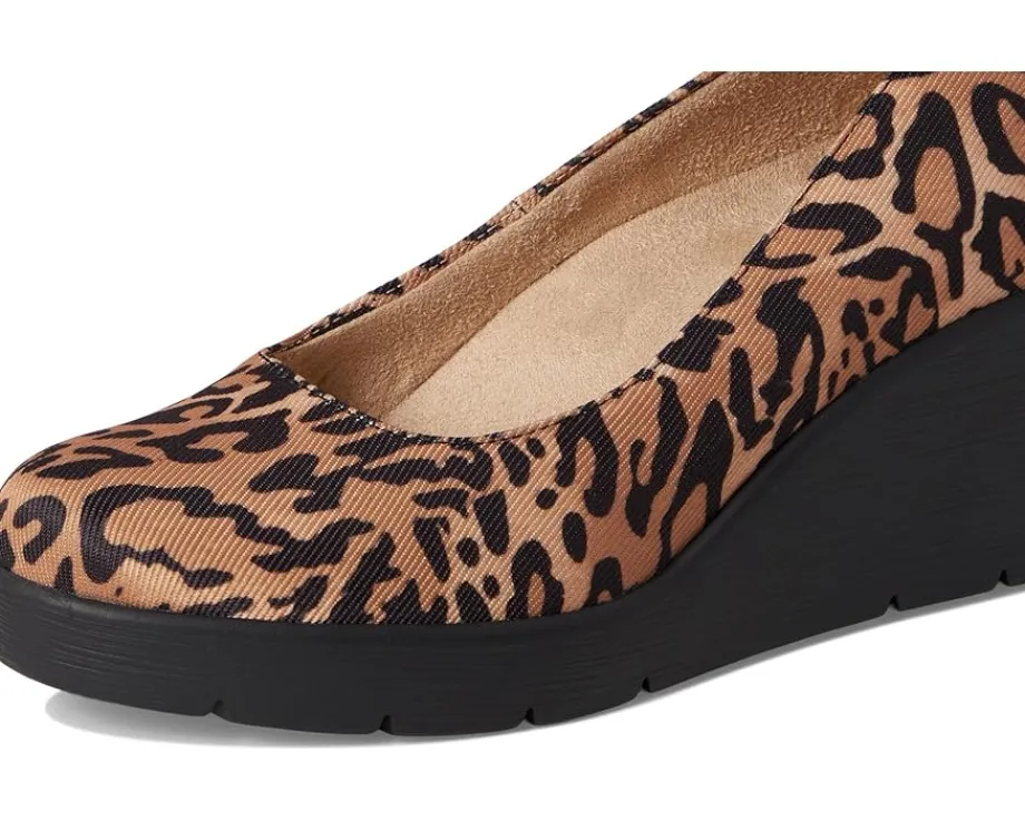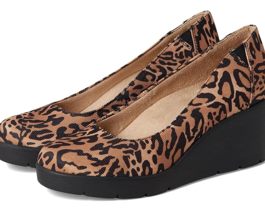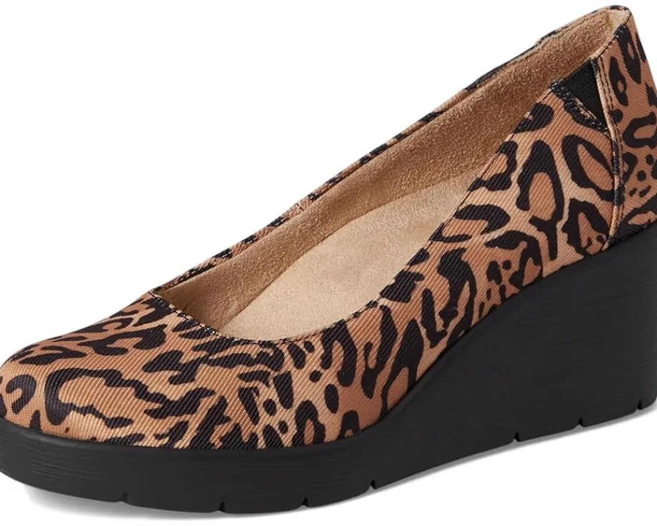 - From brunch to exploring, the Naturalizer® Soul Naturalizer About Time wedge is your go-to for casual chic. Featuring a chic, closed-toe design with a versatile polyurethane upper and faux leather insole, this shoe combines durability and luxury with a recycled polyester lining. The ContourFIT™ technology ensures a perfectly sculpted insole with soft foam lining, providing arch support and memory foam cushioning to keep your feet comfy all day. Designed with elasticized goring for extra flexibility, this pull-on wedge heel offers ease and comfort, while the sock lining keeps things fresh. A lightweight, flexible outsole completes the look, giving you all the support you need for effortless style and all-day wearability.