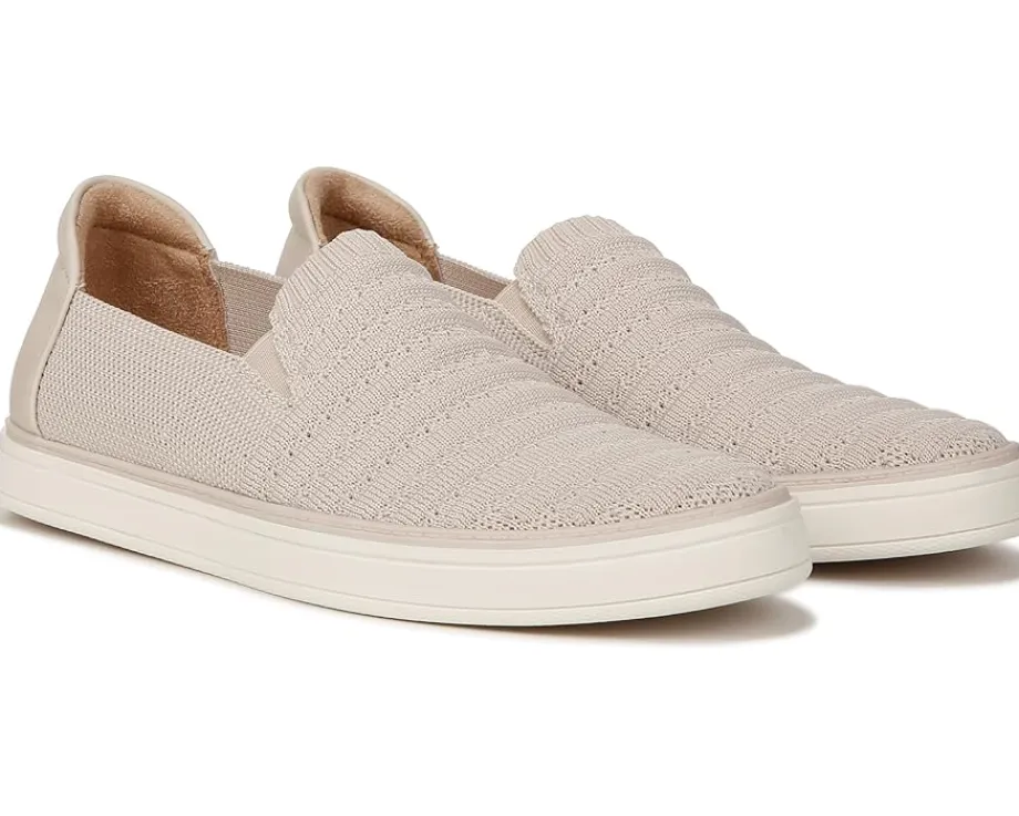 - Kick it in style wearing the Naturalizer® Kemper. Crafted from canvas, g=fabric upper, this pair of slip-on shoes features almond toe design, padded collar or frayed topline with back pull tab for easy on and off, and brand detailing on the footbed.