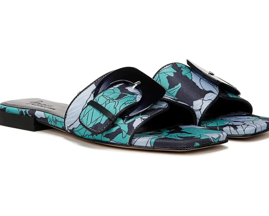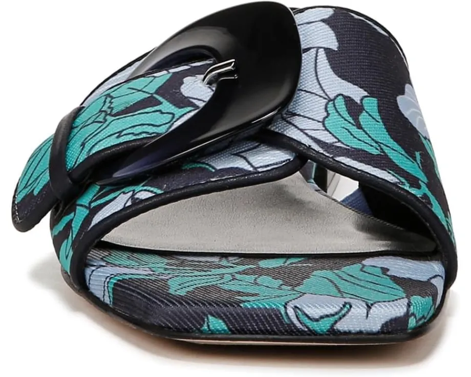- Step into a world of artful comfort wearing the Naturalizer® Naomi2 Slides. Crafted from floral fabric upper with buckle detailing on top, this pair of slip-on flats features open square toe, low-stacked heel, foam insole for added comfort and cushioning, and sleek silhouette for a classy look. It comes with brand detailing on the footbed.