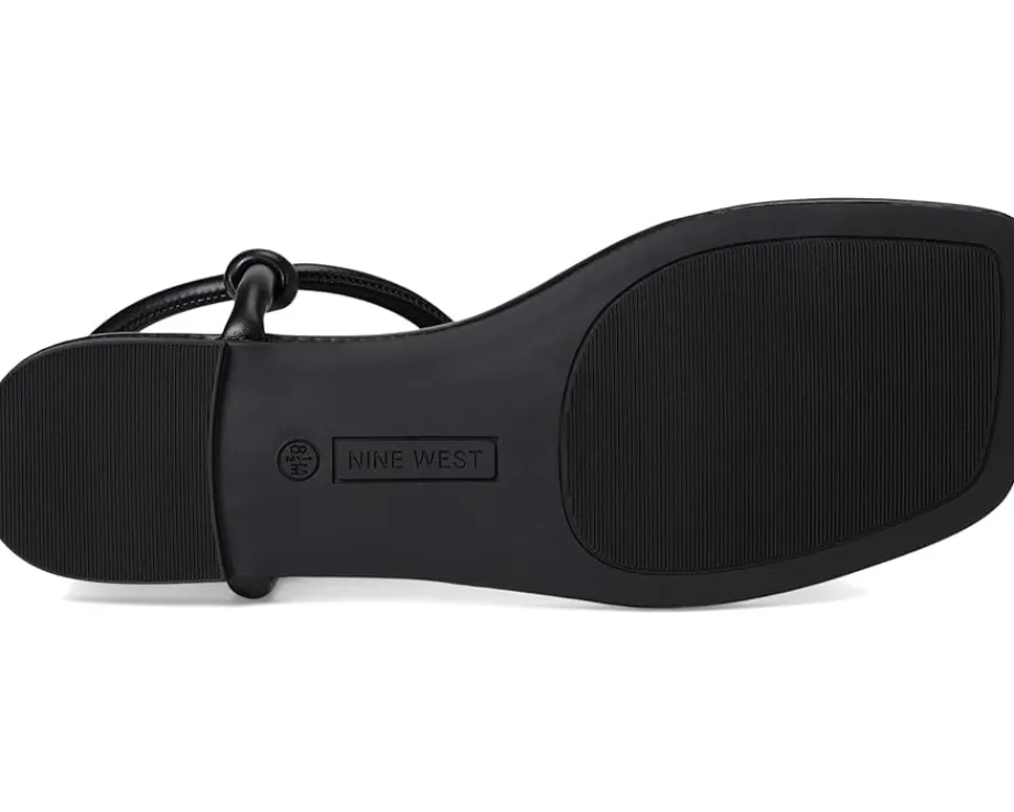 - Complete your look in the Nine West® Nortny sandals. These flat sandals feature a modern square toe shape, knot detailing, and a sleek silhouette. They are made of a faux leather upper and cushioned insole. These slip-on sandals are a must-have wardrobe essential.