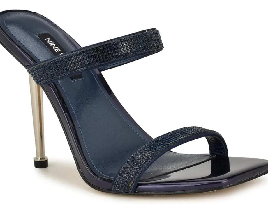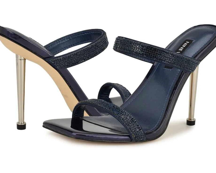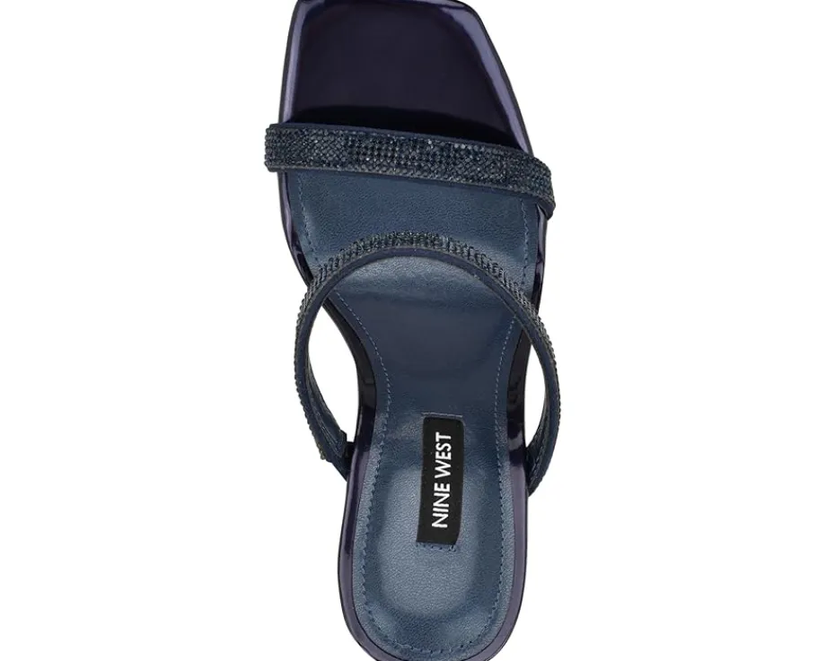 - Keep your style game sassy with Nine West® Yogi slip-on sandals that are perfected to empower women to take on the world in style, from day to night. These comfortable sandals are featured in faux suede upper with polyurethane lining and a rubber insole. With a modern square toe design and embellished double straps, they make a gorgeous wardrobe staple.