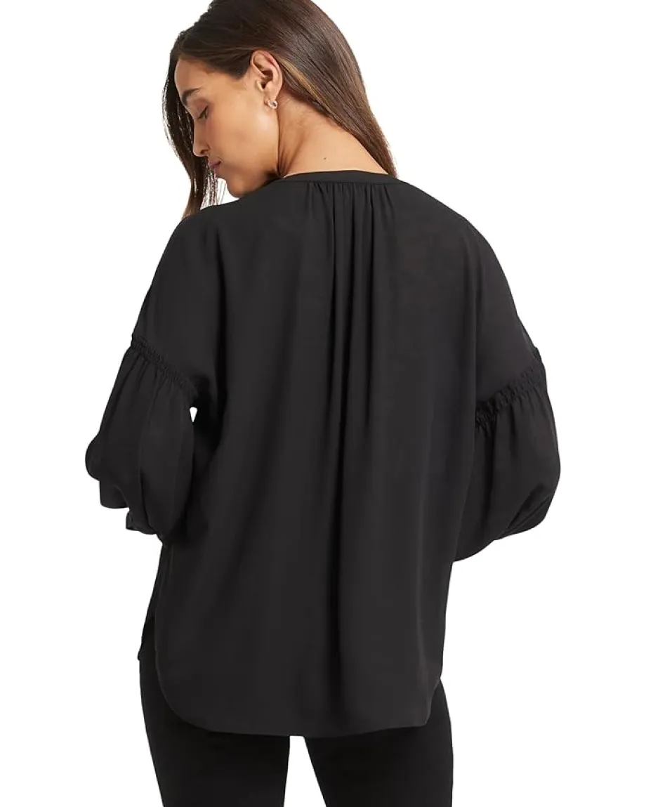 - Look gorgeous and get loads of compliments wearing the NYDJ® Paulina Peasant Blouse. Crafted in a regular-fit silhouette, the top features a slit neckline with half-button closure, three-fourth puff sleeves, intricate embroidery, and a curved hem.