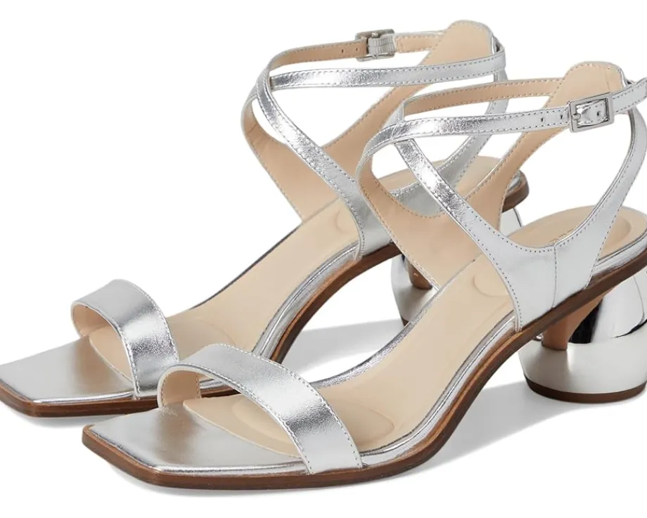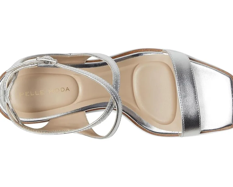 - step higher, and shine brighter wearing the Pelle Moda® Laika 2 Sandal. Crafted from leather upper, lining, and EVA insole, this pair of sandals features open square toe, one strap detailing on the vamp, two piece sandal with ankle strap, adjustable buckle closure, circular heel wrapped in metal for a fun look, and brand detailing on the footbed.