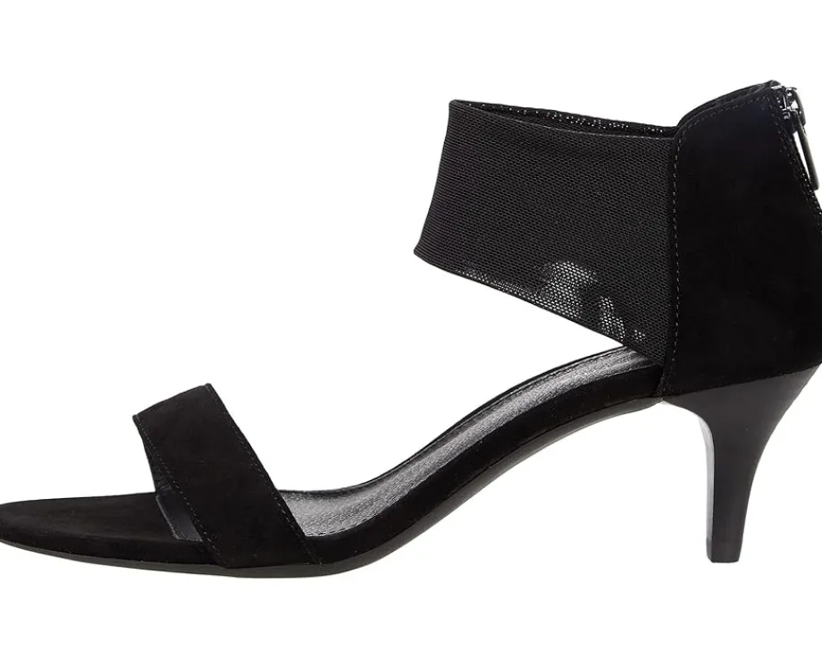 - The striking Pelle Moda® Elvi pump makes a bold statement with a smooth suede upper finish, an open toe with single strap across the vamp, and a stretch mesh ankle cuff.