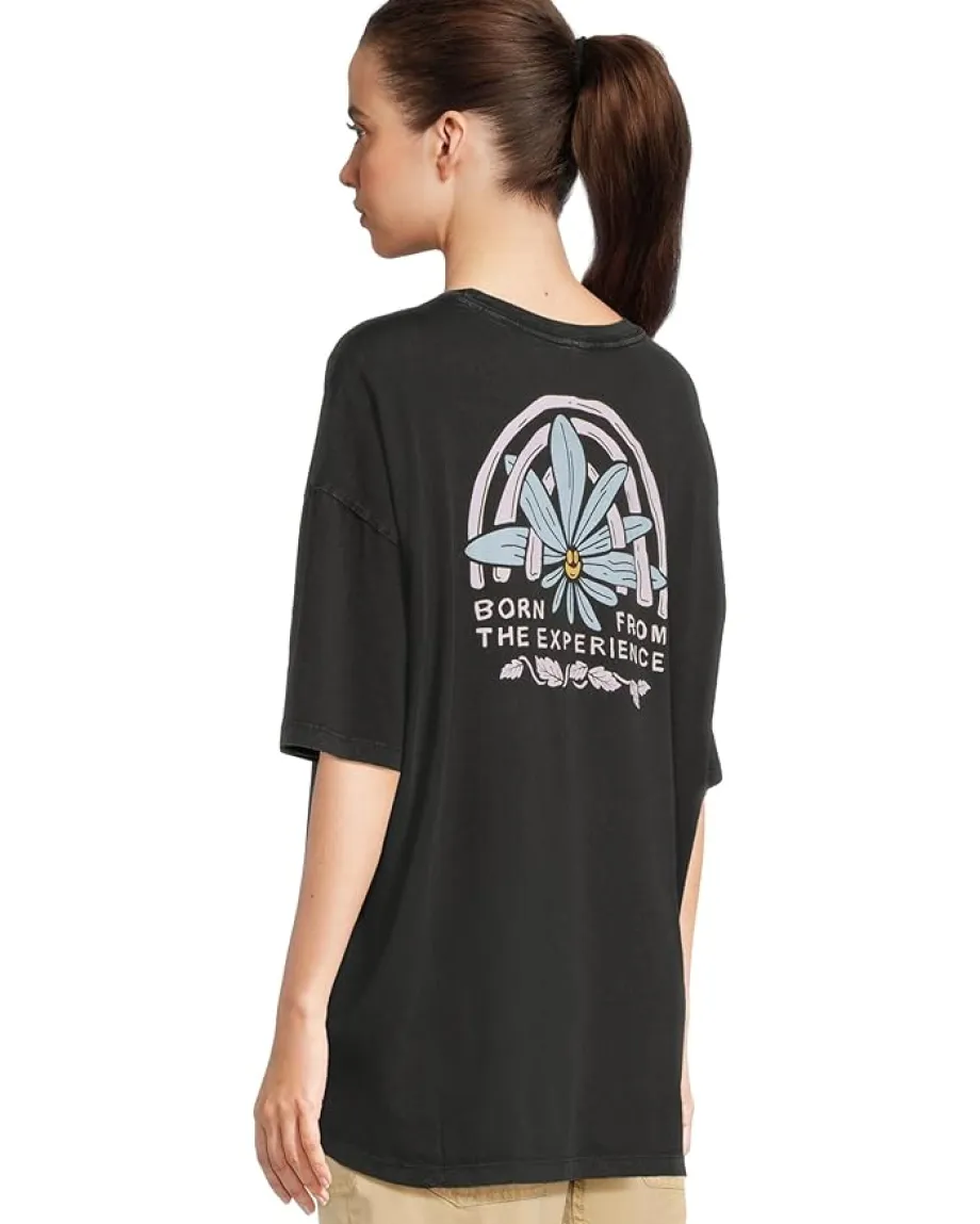 - Add comfort to your basic everyday routine wearing Prana® Everyday Graphic Oversized Tee. The oull-on style tee features a ribbed crew neck, forward shoulder seams, short sleeves, prAna® graphic at the chest & oversized prAna® graphic at the back, and a straight hem. The exterior woven label placed on the wearer’s left front hem adds a genuine feel.