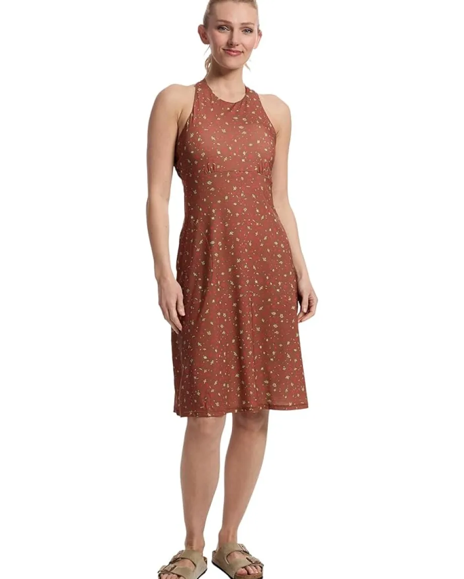 - The Prana® Jewel Lake Summer Dress is crafted from polyester knit fabric that keeps you cool and comfortable all day. This short dress features UPF 30+ protection that protects against harmful sun rays while the built-in bra with removable pads provides support. The sleeveless style and a high neckline offer added style. This printed dress features a strappy back design that makes it ideal for the warm weather.