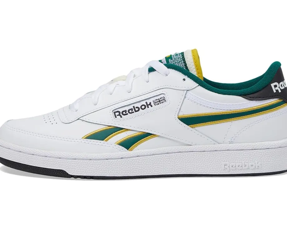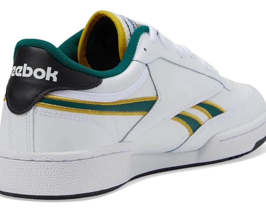 - Step up your fashion game with these timeless Reebok® Lifestyle Club C Revenge sneakers that never go out of style. The low-top sneakers come with a full leather upper with popped stripe piping & shadow heel branding, leather lining, and cushioned rubber insole. The lace-up closure on the sneakers allows easy adjustability and the signature Reebok® branding on the side panel gives them a statement touch.