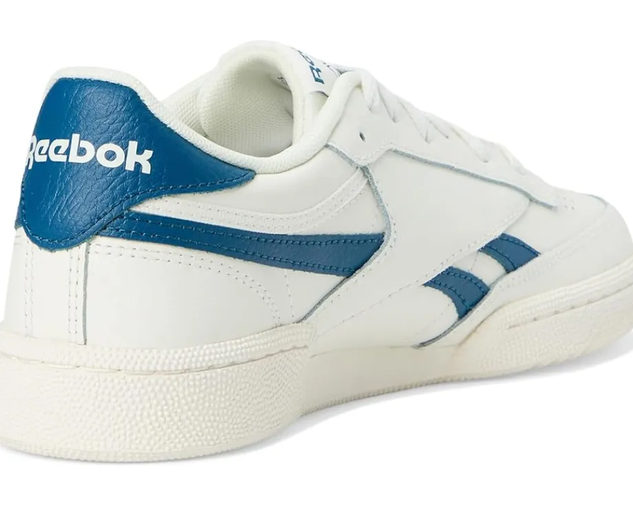 - Slight off-colored collar binding for added “sun baked” aesthetic, the Reebok® Lifestyle Club C Revenge looks classy. Crafted from leather upper, lining, and rubber insole, this pair of shoes features round toe, lace-up closure, iced cup sole bottom, and brand detailing on the sides, tingue and footbed.