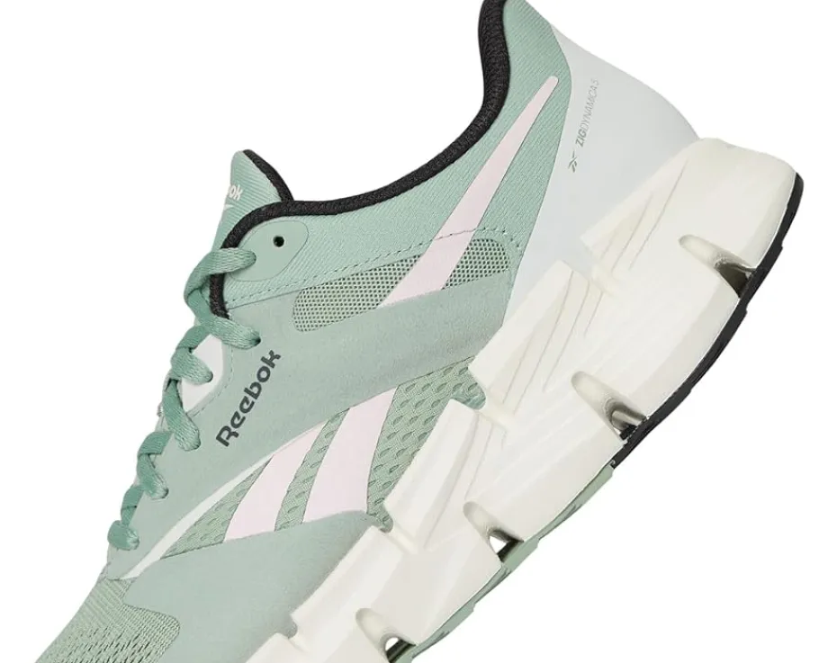 - Step out confident wearing the Reebok® Zig Dynamica 5. Crafted from textile upper, lining and insole, this pair of shoes features closed round toe silhouette, lace-up closure, and updated zig midsole. It comes with tongue, footbed, and sides. These responsive, comfortable and versatile shoes are an everyday go-to pair.