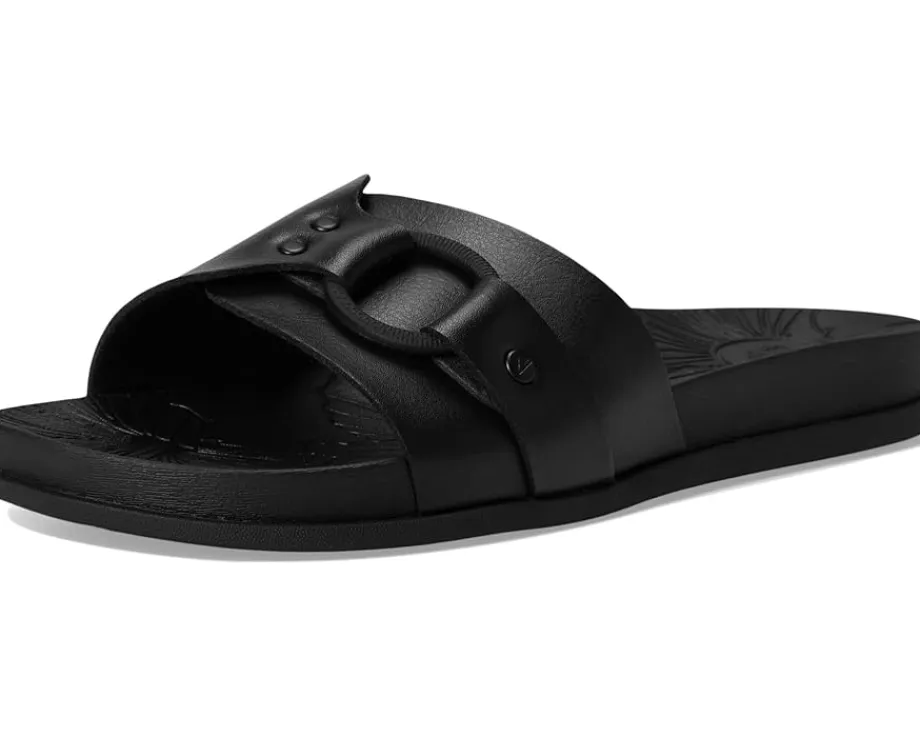 - Chic, comfy, and ready to travel. An elevated take on a classic slide, the Reef® Cushion Soho Cruz is perfect for dressing up or styling down on your next sunny outing. It’s crafted with soft vegan leather, a rubber outsole, and generous arch support to keep you comfortable from vacation to city exploration. The Cushion Soho Cruz is ready for any adventure. Soft and supportive cushion with a rebound footbed with a hibiscus flower footbed design deboss. Super soft unlined PVC Free vegan leather slide with faux raffia molded buckle and recycled hardware detail.