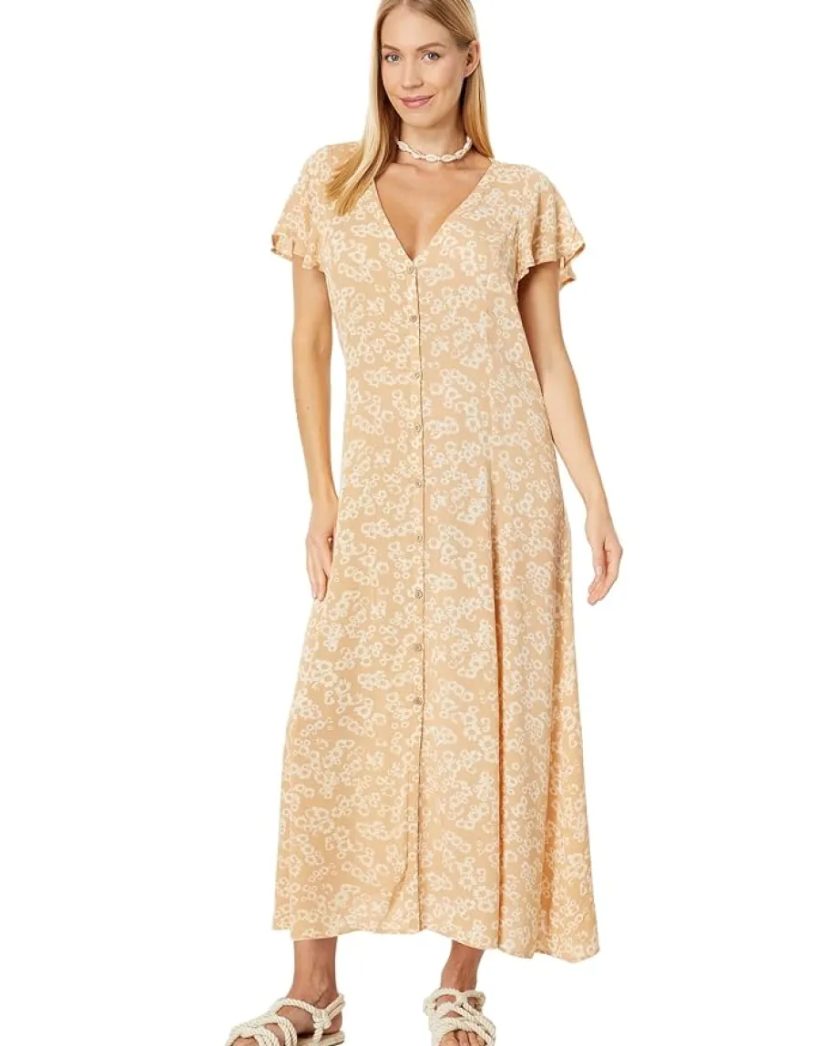 - Get a vintage classic and aesthetic look for your next casual meetup wearing the Rip Curl™ Sunrise Session Ditsy Midi Dress. The dress features a V-neckline and short ruffled sleeves. There is also a drawstring closure at the back.
