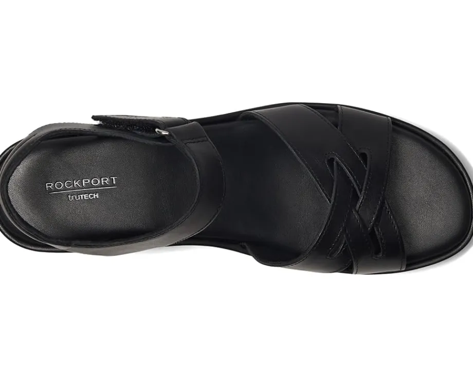 - A staple for any wardrobe, the Rockport® Amira wedge sandals combine style and comfort. It offers crisscross straps, an open toe, and a cushioned insole, to keep you on your feet. Featuring truTECH® technology for lightweight shock absorption. The sandals feature leather upper, polyester lining, and foam footbed.