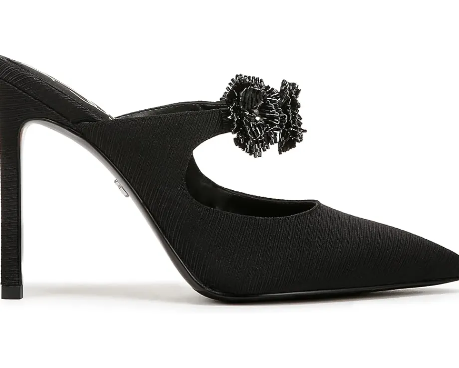 - With beaded floral detailing and a pointed toe, the Sam Edelman® Amelie Dress Mule is a fall-forward classic that pairs with everything from cropped denim to cocktail dresses. The slip-on footwear features polyester upper with sleek stiletto heel and pointed toe silhouette.