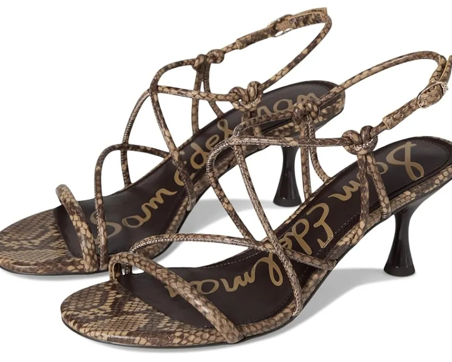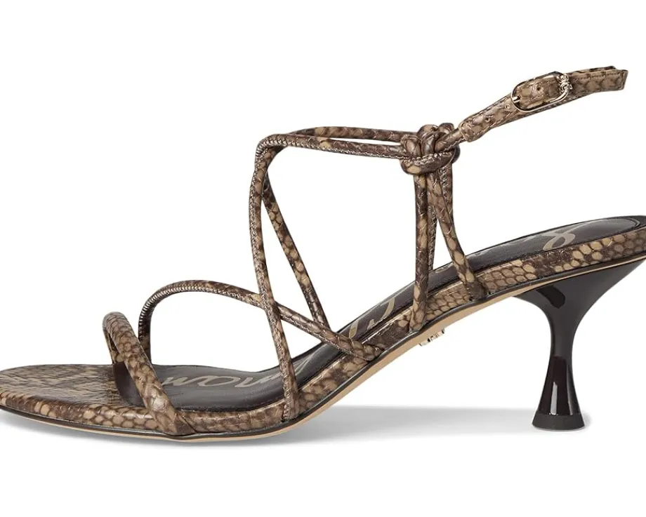 - The Sam Edelman® Riana is a sophisticated strappy heel sandal designed for elegant evenings and elevated occasions. It features a minimalist silhouette with slim straps, a sculpted kitten heel, and an open round toe for a graceful finish. The adjustable ankle strap with buckle closure ensures a secure fit.