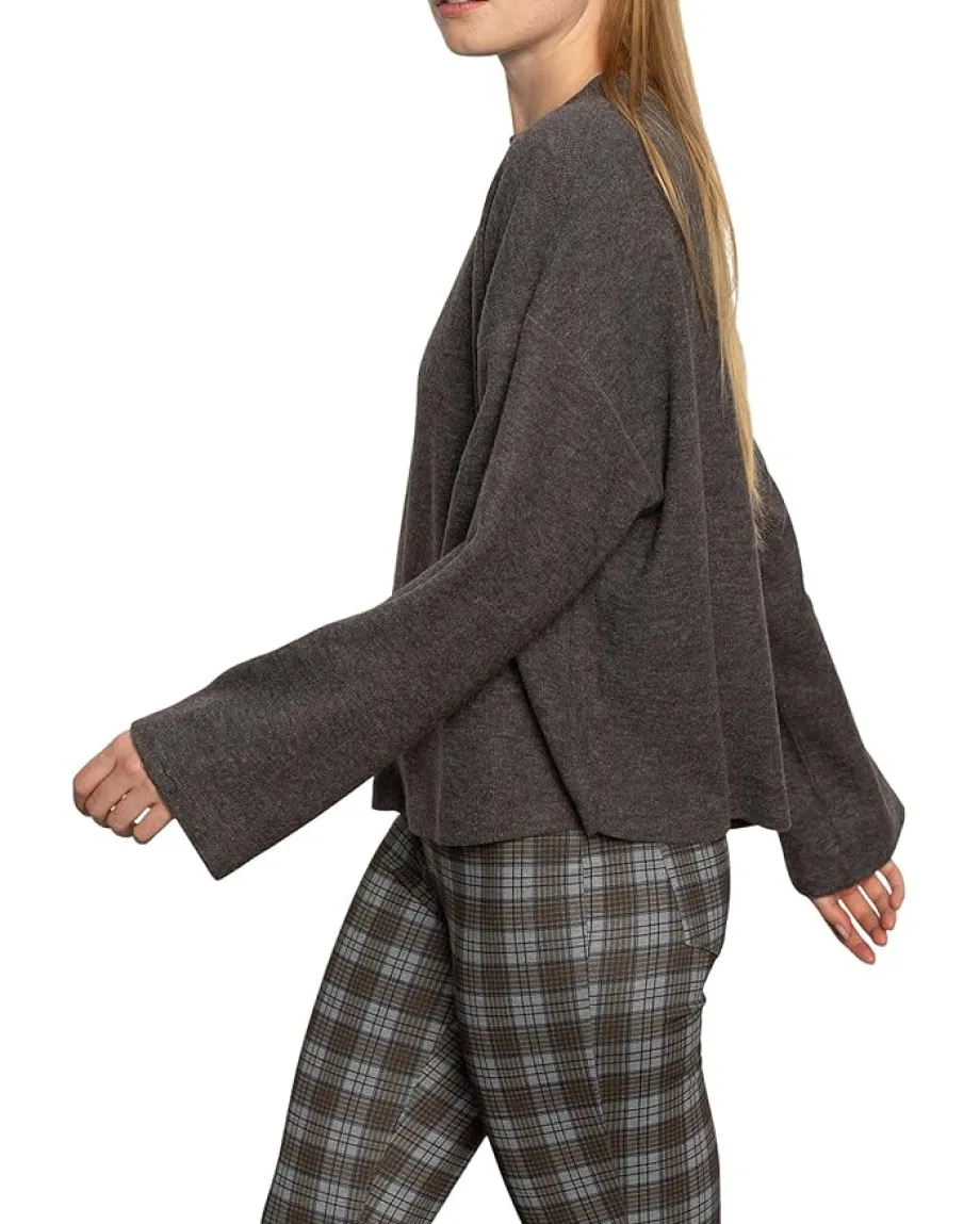 - The Sanctuary™ Into The Woods Cozy Top offers a plush, brushed texture that feels like a gentle hug on cooler days. The silhouette is slightly oversized with a mock neckline, drop shoulders, and long sleeves, making it ideal for lounging or casual outings.