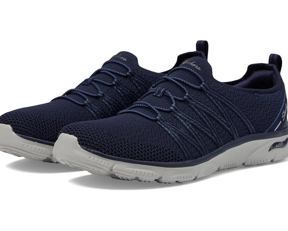 - The SKECHERS® Arch Fit Sunny – Creative Pass Sneakers seamlessly combine comfort and support for a smooth ride every time. This vegan active design features an engineered mesh upper with fixed stretch laces and a removable Arch Fit Air Cooled Memory Foam insole. The ankle pull tab is designed for donning/doffing.